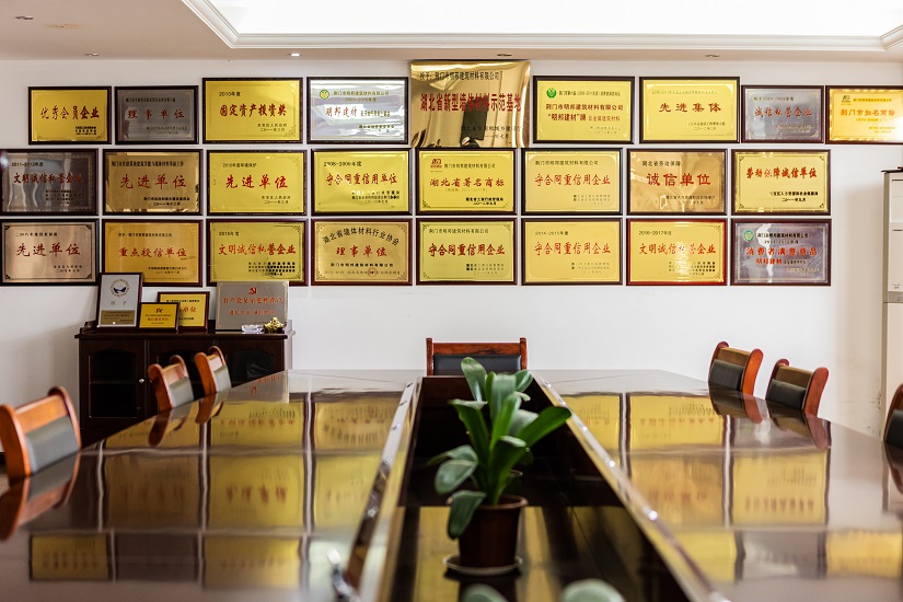 “明邦”商標(biāo)被認(rèn)定為“湖北省著名商標(biāo)”,同時被評定為“湖北名牌”產(chǎn)品,企業(yè)同時被評定為“湖北省重合同守信用企業(yè)”、“湖北省新型墻材產(chǎn)業(yè)化示范基地”和“荊門市循環(huán)經(jīng)濟(jì)示范企業(yè)”,公司通過了“綠色建材評價標(biāo)識證書”、“GB/T 45001-2020職業(yè)健康安全管理體系認(rèn)證證書”、“GB/T 19001-2016質(zhì)量管理體系認(rèn)證”、“GB/T 24001-2016環(huán)境管理體系認(rèn)證證書”。